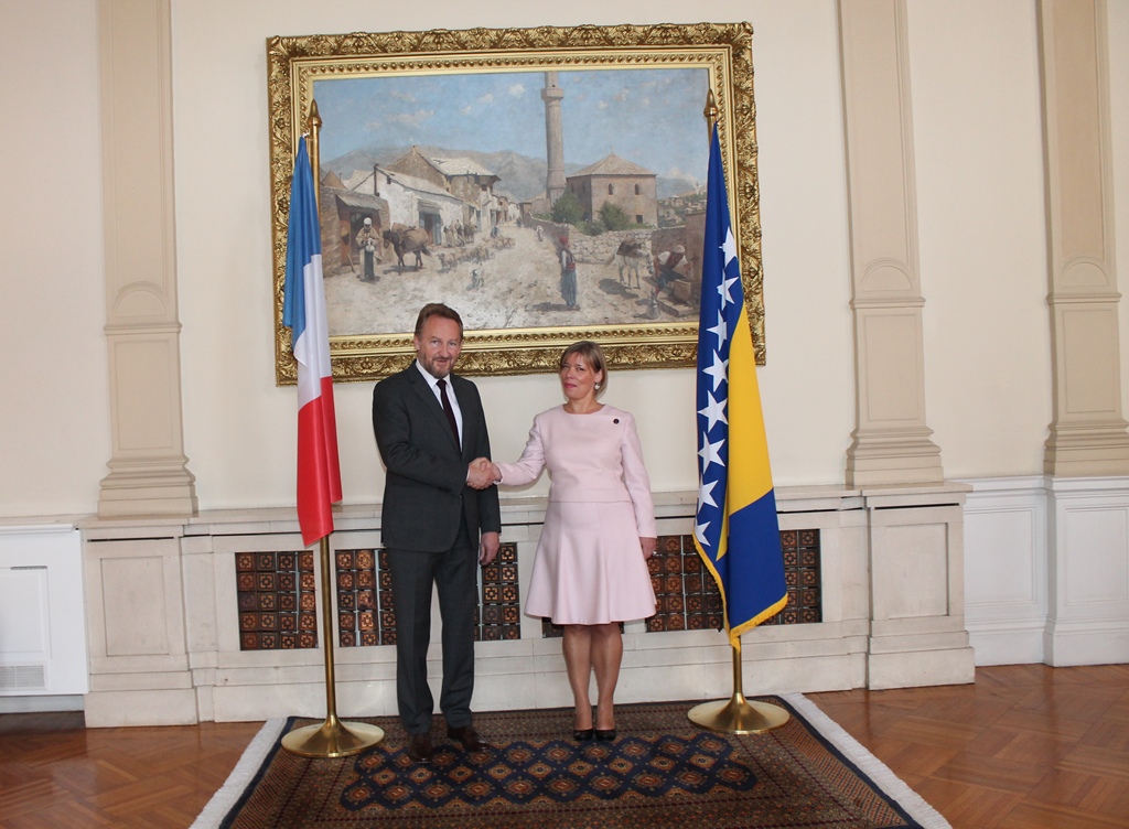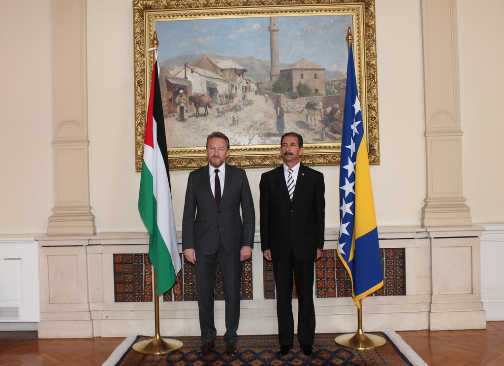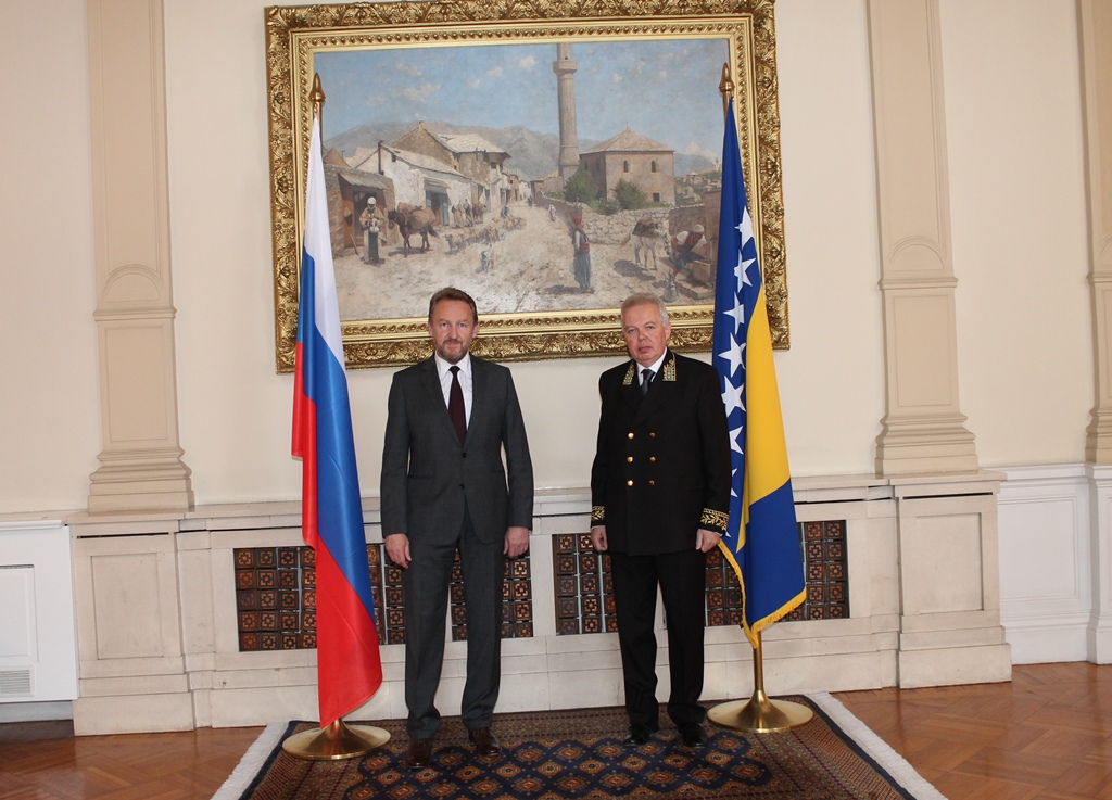Arhiva galerija 1998. - 2014.Predsjedavajući Predsjedništva BiH Bakir Izetbegović u odvojenim ceremonijama primio akreditivna pisma novoimenovane ambasadorice Republike Francuske u BiH Claire Bodonyi, novoimenovanog ambasadora Države Palestine u BiH Riziqa N.M. Nammouraha i novoimenovanog ambasadora Ruske Federacije u BiH Petra Anatoljević Ivancova Pošalji dokument na e-mail E-mail pošiljaoca (*): E-mail primaoca (*): Komentar: